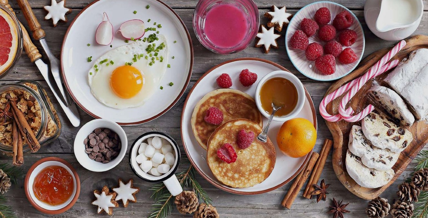 Galdā tiks celti klasiskie vēlo brokastu ēdieni, kā arī sāļi un saldi labumi Ziemassvētku noskaņās.